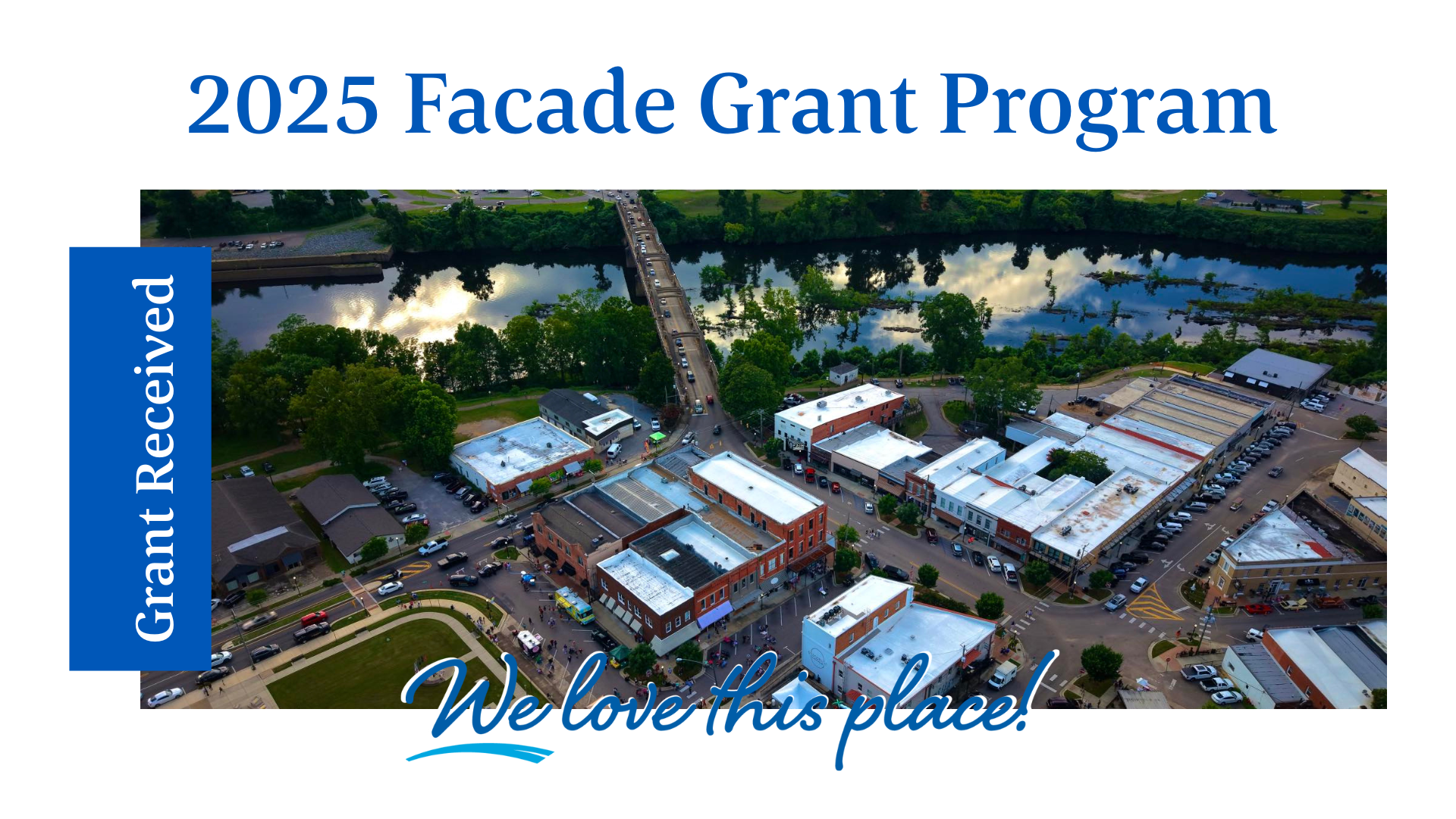 The Main Street Wetumpka Facade Grant Program supports improvements to building exteriors in the Main Street District. Eligible applicants may receive up to $1,500 in grant funding, with a required 50% match. Projects must meet the Main Street Wetumpka Design Guidelines and must be completed within 90 days of notification of grant award.